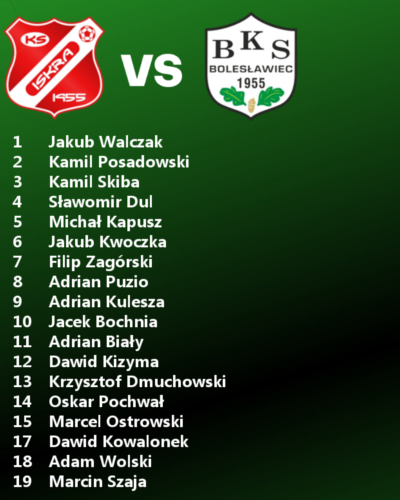 05.06.2021 CZYTAJ WIĘCEJZwycięstwem BKS-u Bolesławiec 6:4 (1:1) zakończył się wyjazdowy mecz 23 kolejki KEEZA Klasy Okręgowej z Iskrą Łagów. Hat-trickiem w tym spotkaniu popisał się Adrian Kulesza, a pozostałe gole strzelili Marcel Ostrowski, Adrian Puzio i Jacek Bochnia. Mecz z wiceliderem był naprawdę s